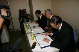 平成22年1月31日(土)ベルクラシック甲府にて、神奈川県歯科医師会、静岡県歯科医師会、山梨県歯科医師会3県による「災害時における相互応援に関する協定書」の調印式が行われました。