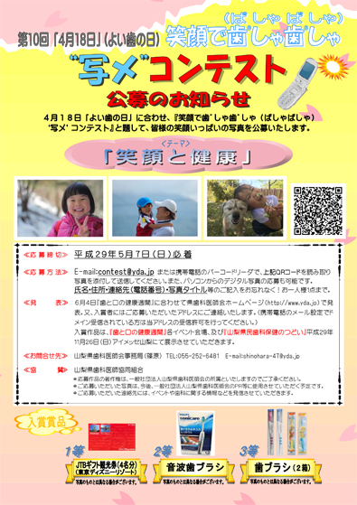 「第10回 笑顔で歯゜しゃ歯゜しゃ“写メ”コンテスト」公募のお知らせ